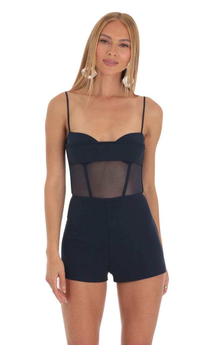 Womens Rompers | LUCY IN THE SKY Mesh Corset Romper in Navy