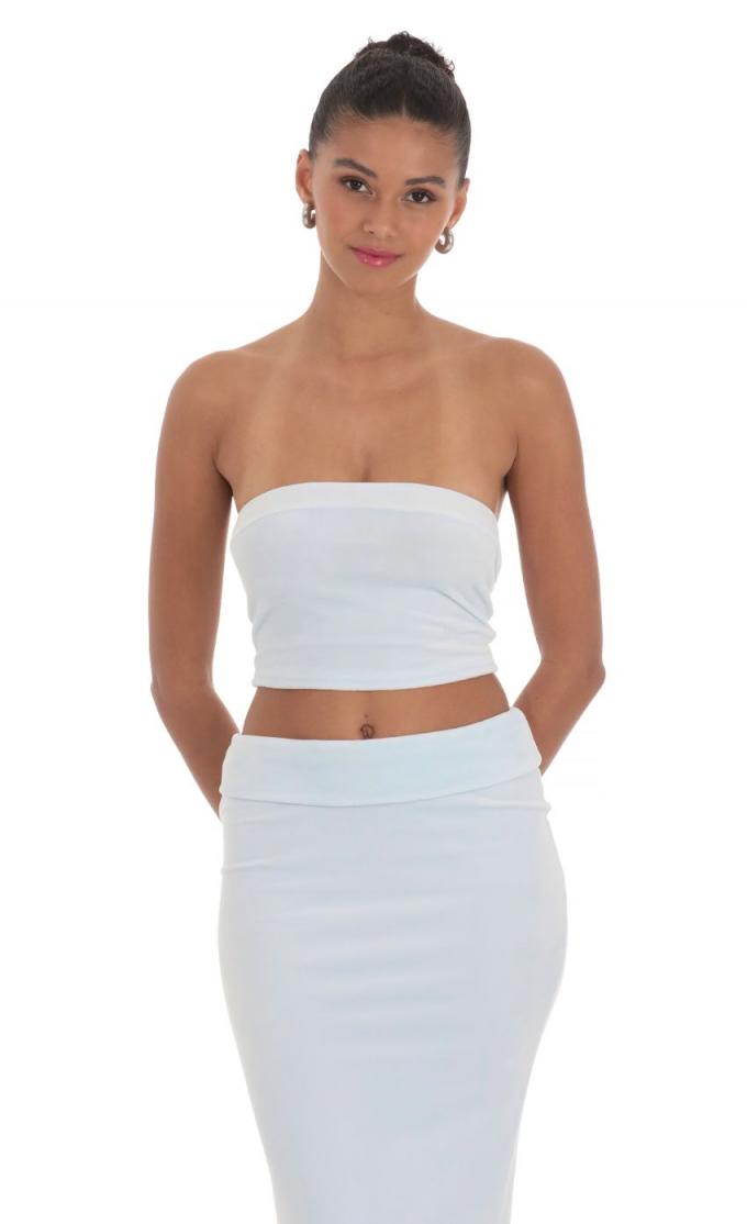 Designed in Los Angeles. – Pull-on skirt. – Top has back tie closure. – Unlined. – Made in polyester fabric. – Hand wash cold. Model is wearing a size small that measures 36in/91cm in length. Slight modifications might be made to improve garment quality. Handling the garments with care, hand-washing and air-drying is strongly recommended